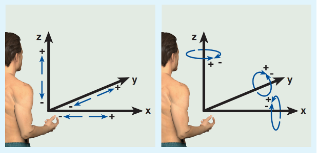 - Direction of movement: the direction to actuate the control relative to the axis as shown in Figure 2 "+" and "-" directions are indicated for both linear and rotary movements.