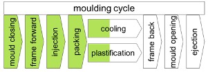 The Figure shows batch procedure of injection moulding machine that guides operators gaze horizontally from start to finish.
