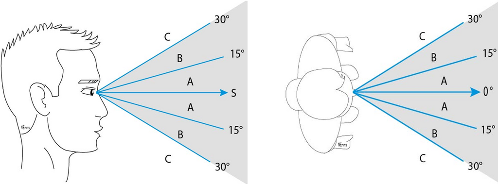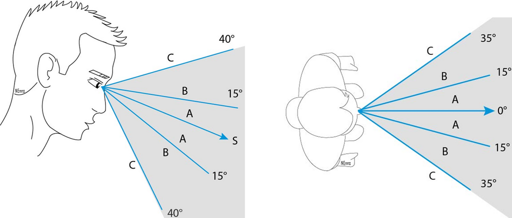 For detection tasks, when employees must be warned by the system, the centre of attention should be in line of sight (see Figure 1). For monitoring tasks, when employees must actively search for information, information should be presented below the line of sight (see Figure 2).